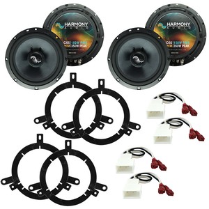 This speaker package includes 1 pair of harmony speakers that are the same size as the advertised factory fit location with included speaker adapter mounts.